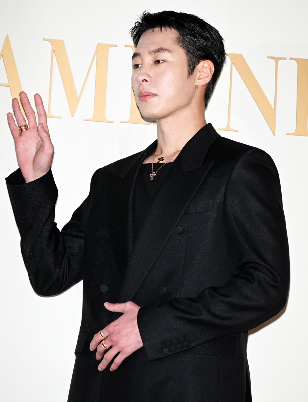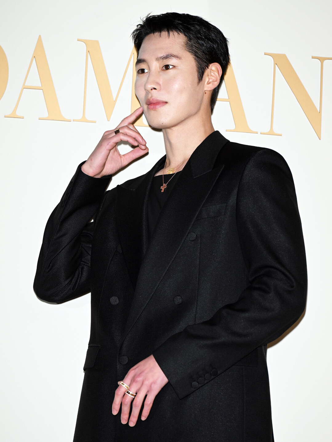 이재욱, 더블 브레스트 재킷과 크로스 목걸이로 완성한 모던 럭셔리 룩