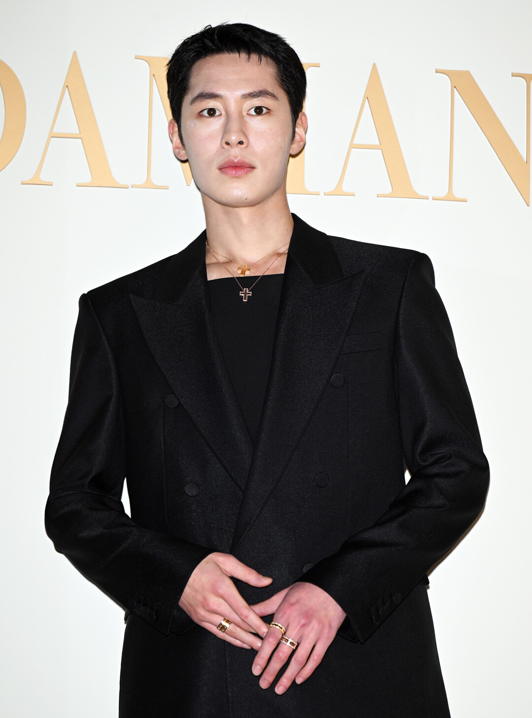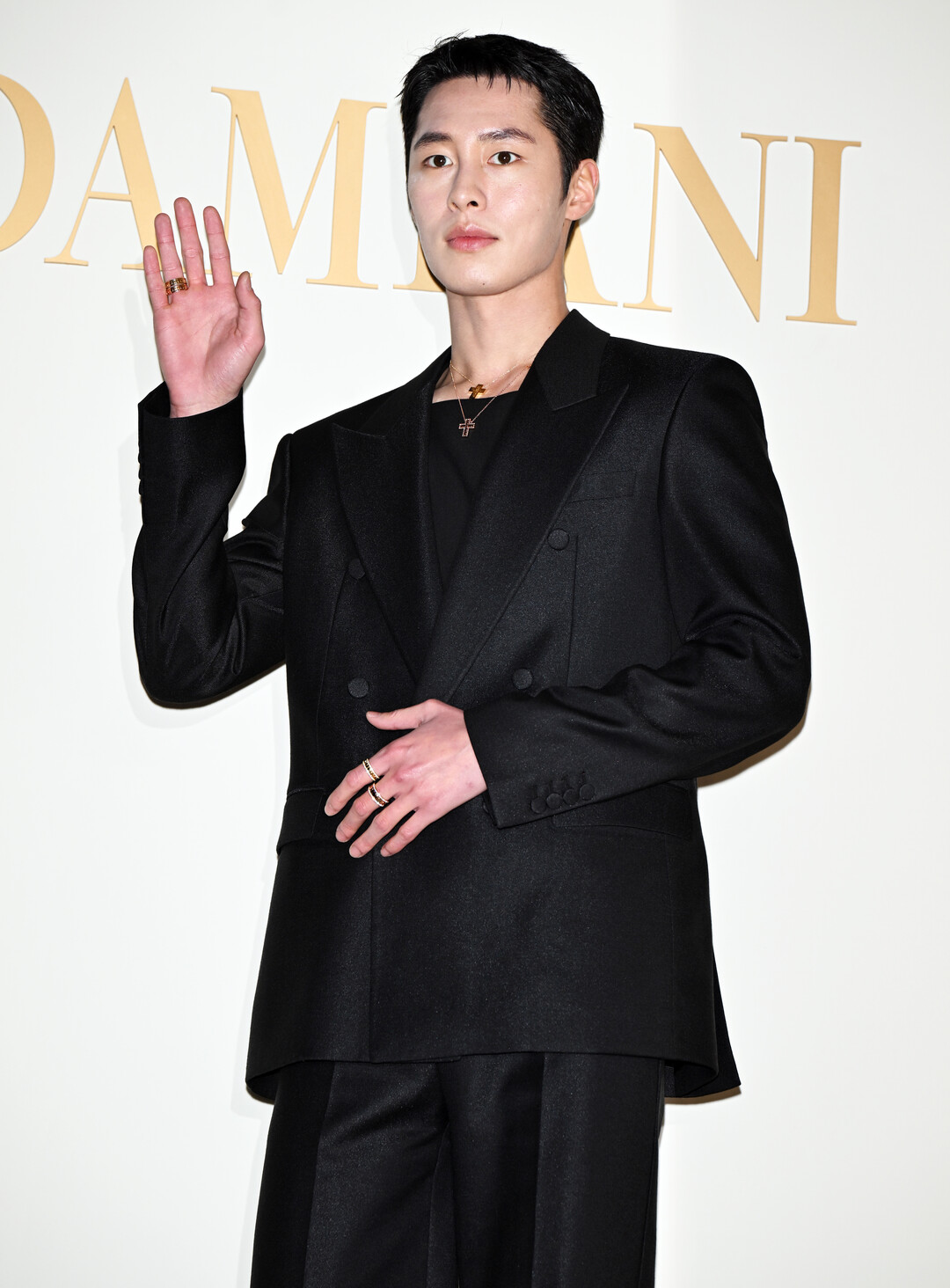 특히 주목할 점은 이재욱이 착용한 다미아니의 시그니처 주얼리 컬렉션이다. 골드와 다이아몬드로 장식된 크로스 펜던트 목걸이를 여러 개 레이어드해 착용해 독특하고 개성 있는 스타일을 완성했다. 크고 작은 크로스 디자인이 겹쳐지며 만들어내는 시각적 효과는 단순한 올블랙 룩에 화려한 포인트를 더했다. 또한 양손에 착용한 다수의 다이아몬드 반지는 명품 주얼리 브랜드 행사에 걸맞은 럭셔리함을 강조했다.
