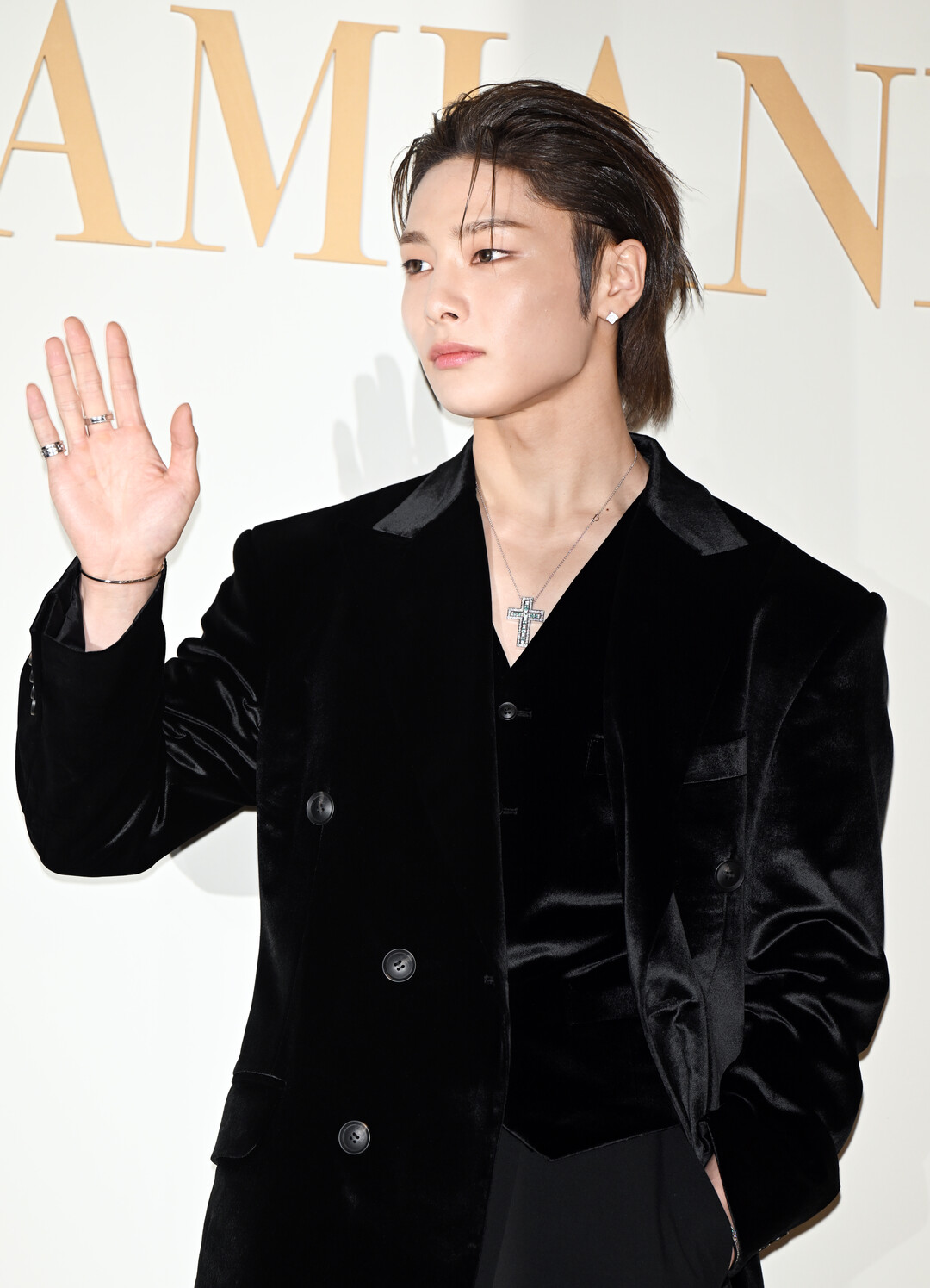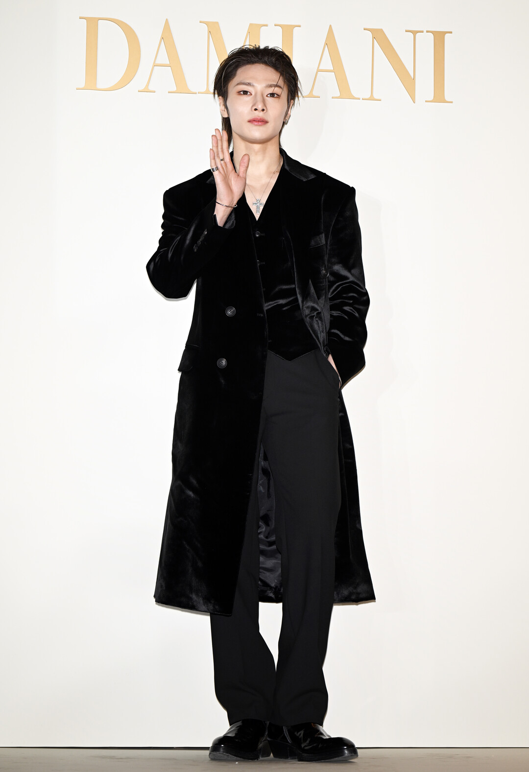 아이엔은 15일 오후 서울 강남구 청담동에서 열린 '까사 다미아니 청담(Casa Damiani Cheongdam)' 오픈 기념 행사에 참석해 블랙 벨벳 더블 브레스트 코트로 고급스러운 분위기를 연출했다. 이날 아이엔은 롱 코트에 블랙 베스트와 팬츠를 매치한 올블랙 스타일링으로 성숙하고 세련된 이미지를 완성했다.
