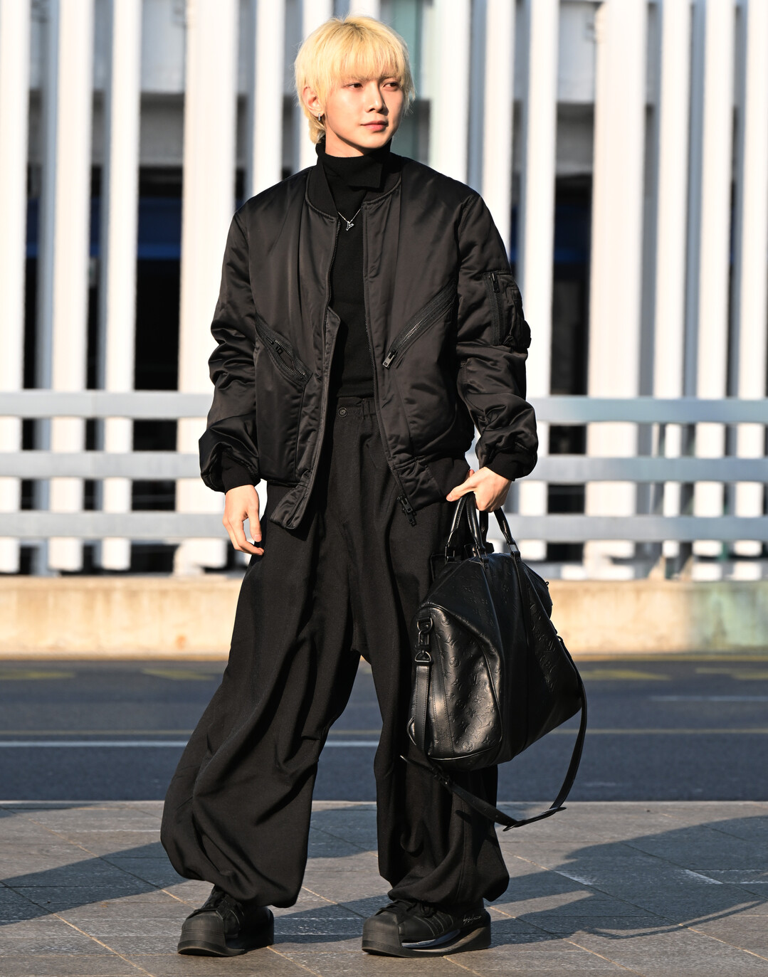 [K라이프저니|글·사진 이주상 기자] 에이티즈 여상이 23일 인천국제공항을 통해 월드투어 일정 참석차 타이베이로 출국하며 세련된 올블랙 공항 패션을 선보였다. 그는 블랙 오버사이즈 MA-1 봄버 재킷을 메인 아이템으로 선택해 도시적인 밀리터리 감성을 완성했다. 팔 부분의 지퍼 포켓 디테일과 앞면의 다중 포켓 구조가 기능적인 매력을 더했으며, 리브 소매와 밴딩 처리는 편안한 착용감을 제공했다. 안에는 블랙 터틀넥을 레이어드해 목선을 강조하며 시크한 분위기를 극대화했다.